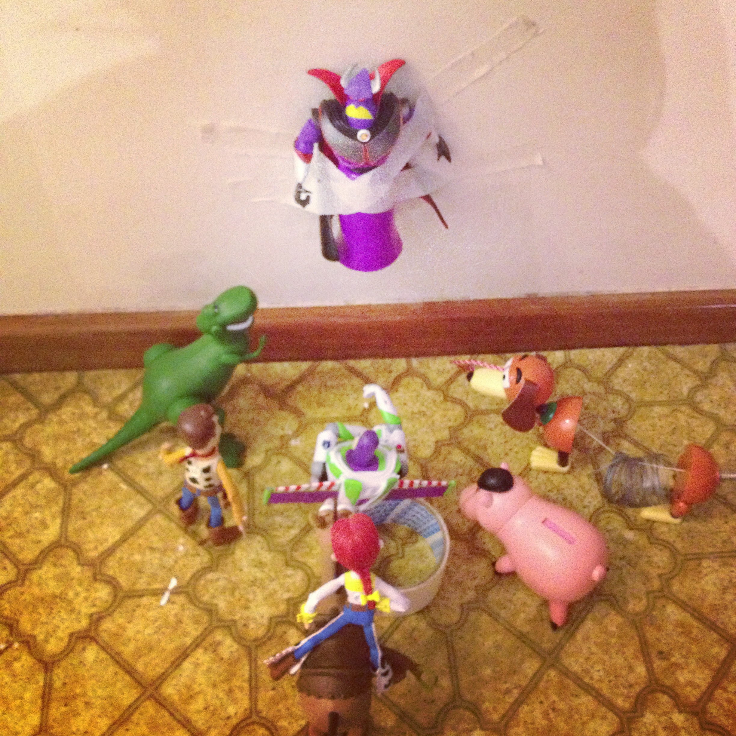 But the next night the fearless gang came to Buzz’s rescue and sought revenge on Zurg by using masking tape to tape him to the wall.