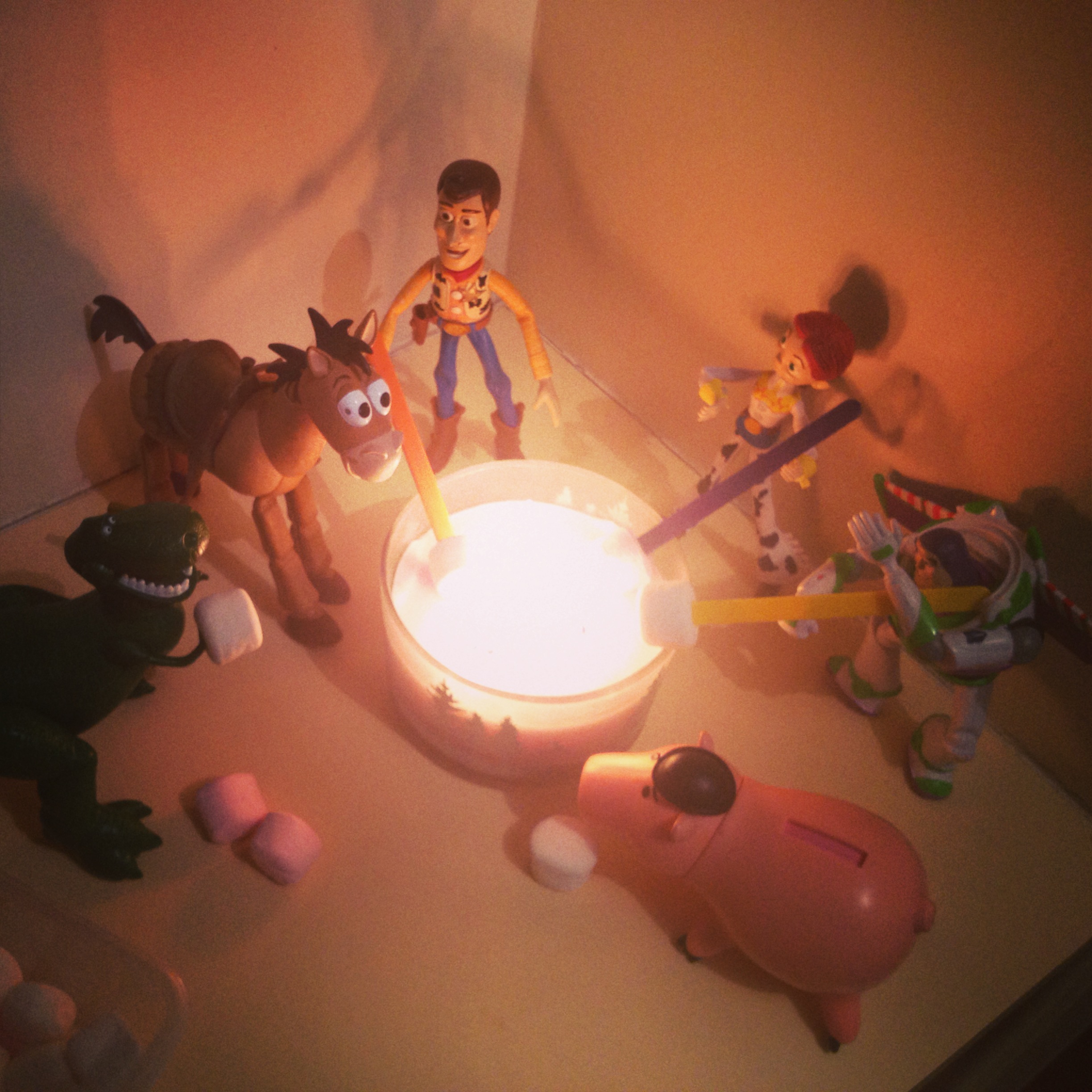 But they were not down and out for very long, the next night they were back at their antics. This time they were caught sitting around the ‘camp fire’ roasting marshmallows. I bet they were telling scary stories too!