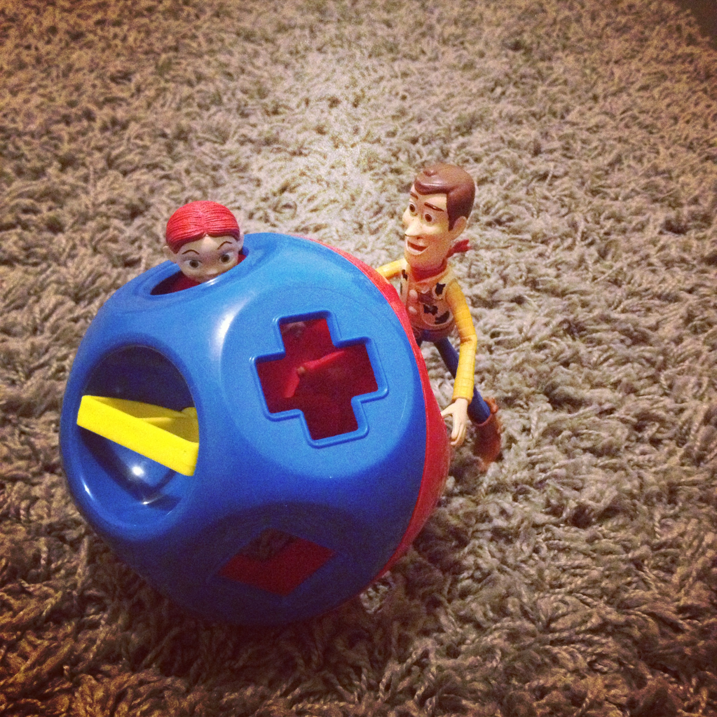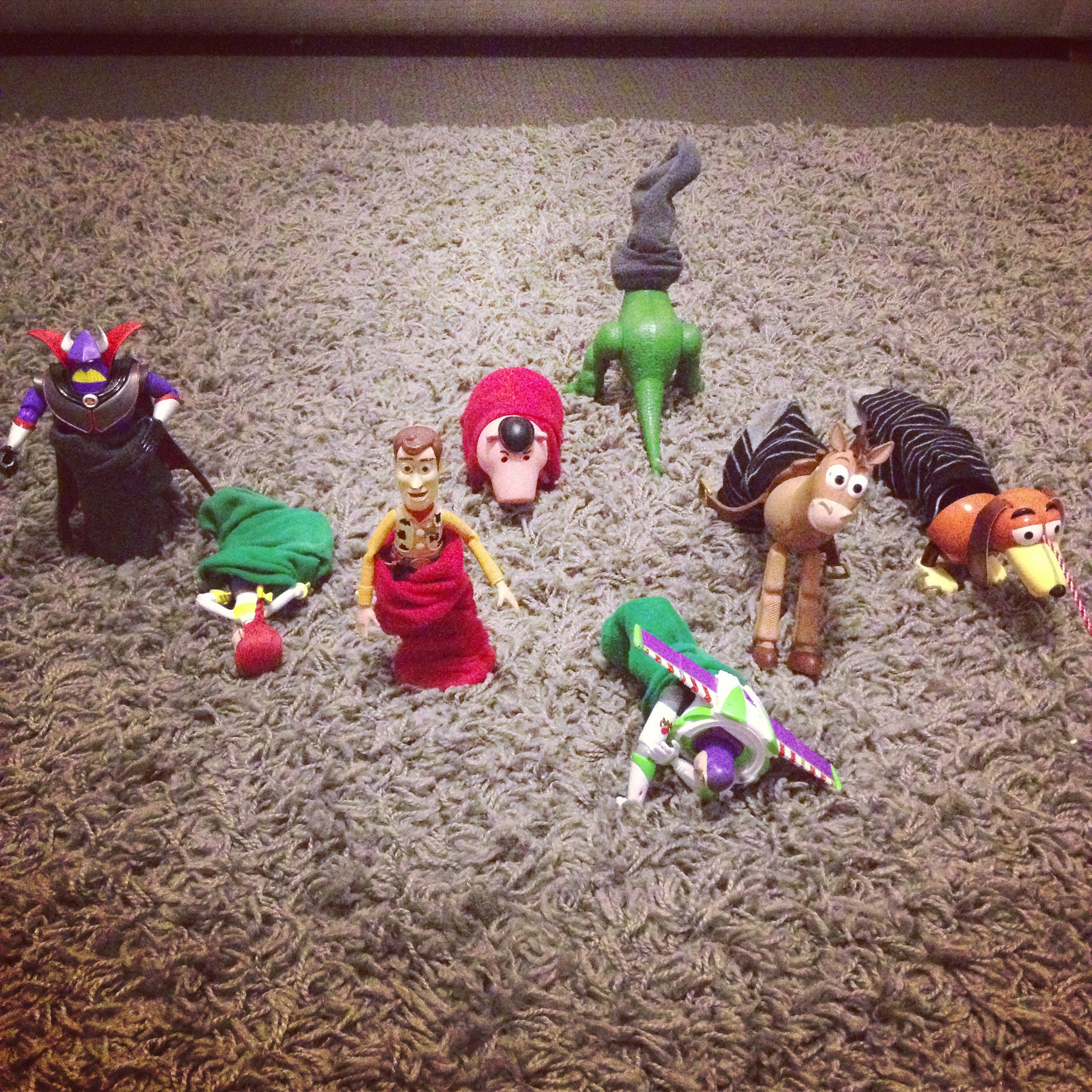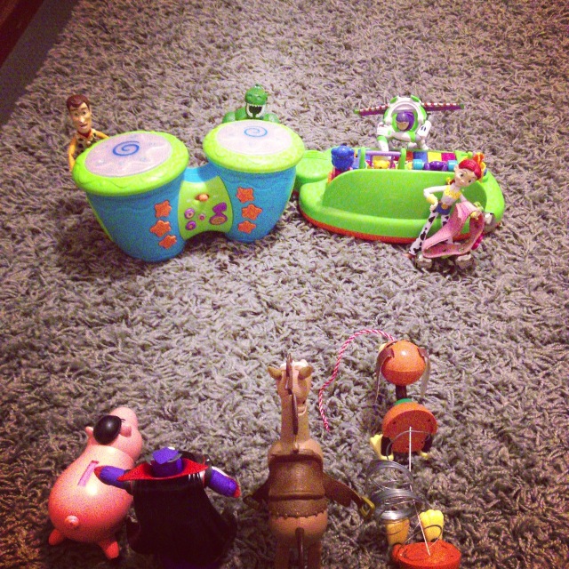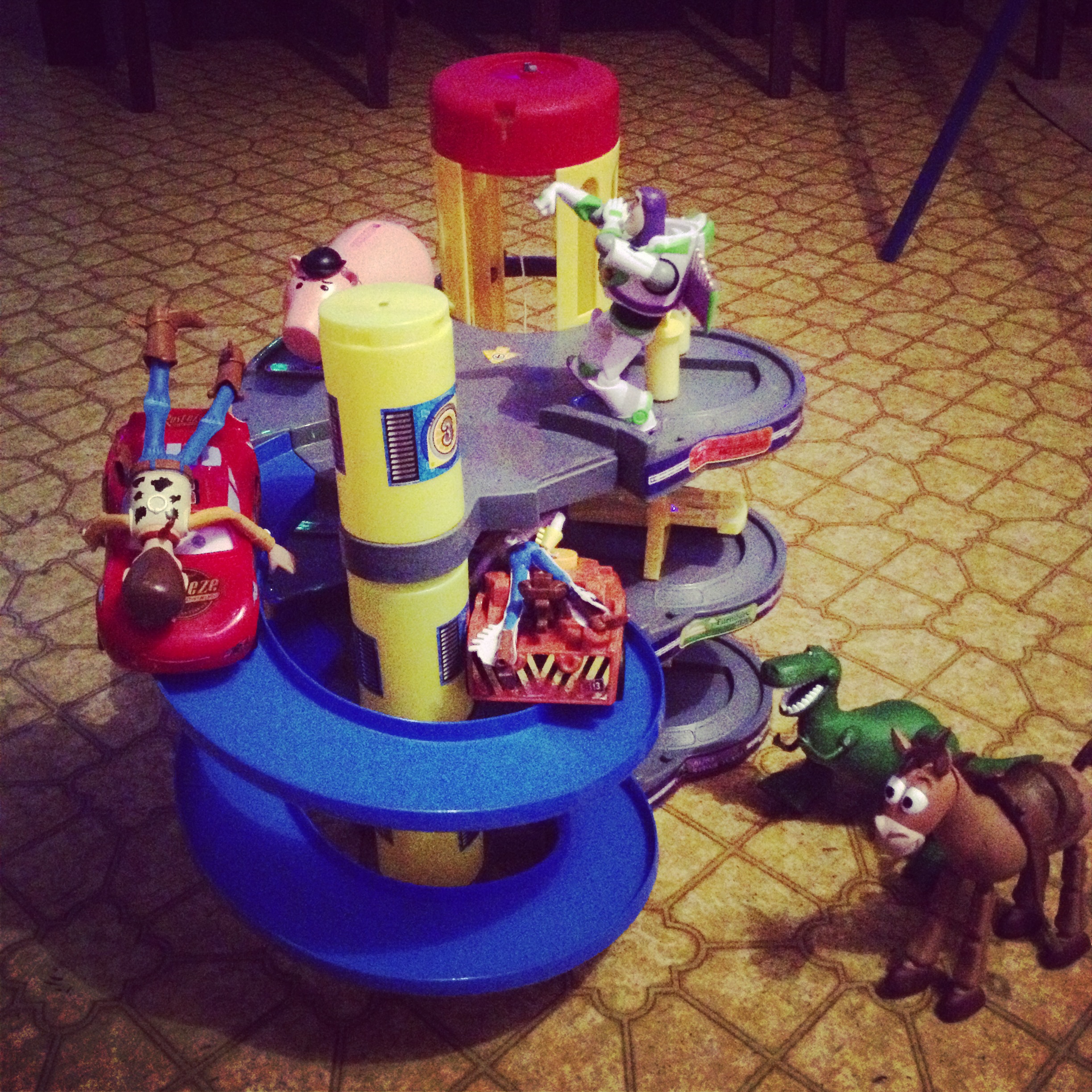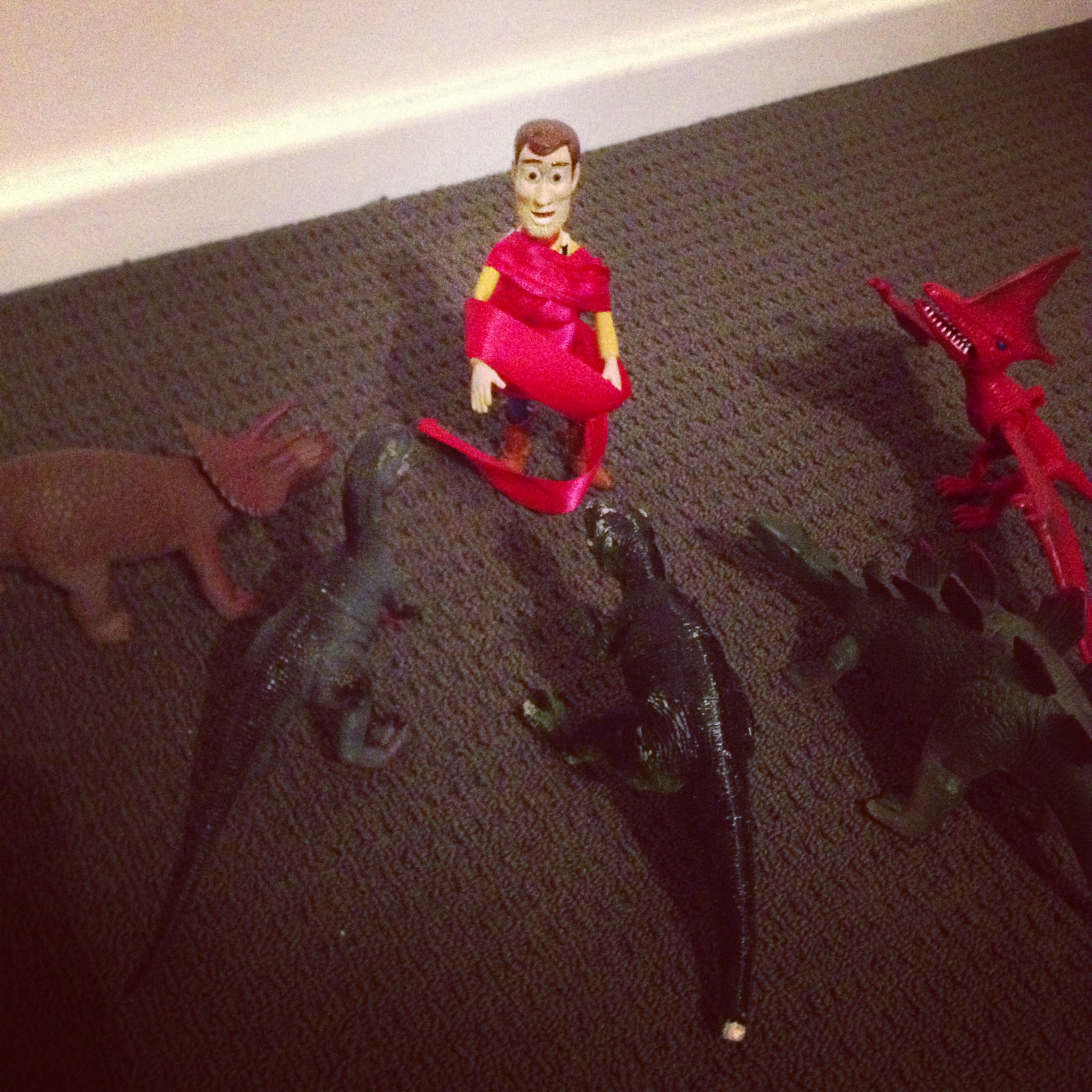 Woody ran into a bit of trouble on his adventure. He ran into the gang of dinosaurs in the living room, uh oh!