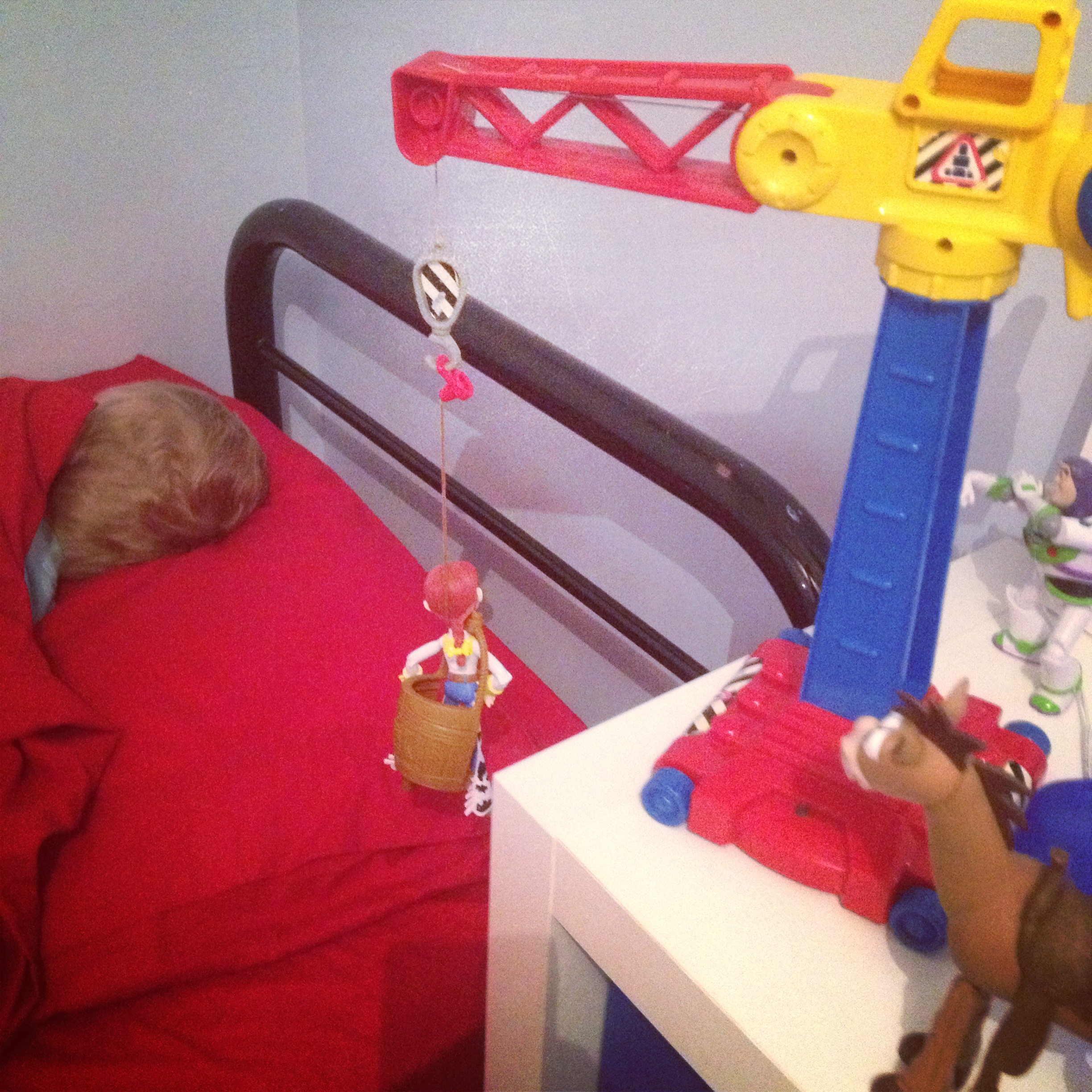 William decided to test the gang out. He tied Woody up and took him to bed with him at night. But the gang launched a rescue mission to try and rescue Woody from beneath the sheets.