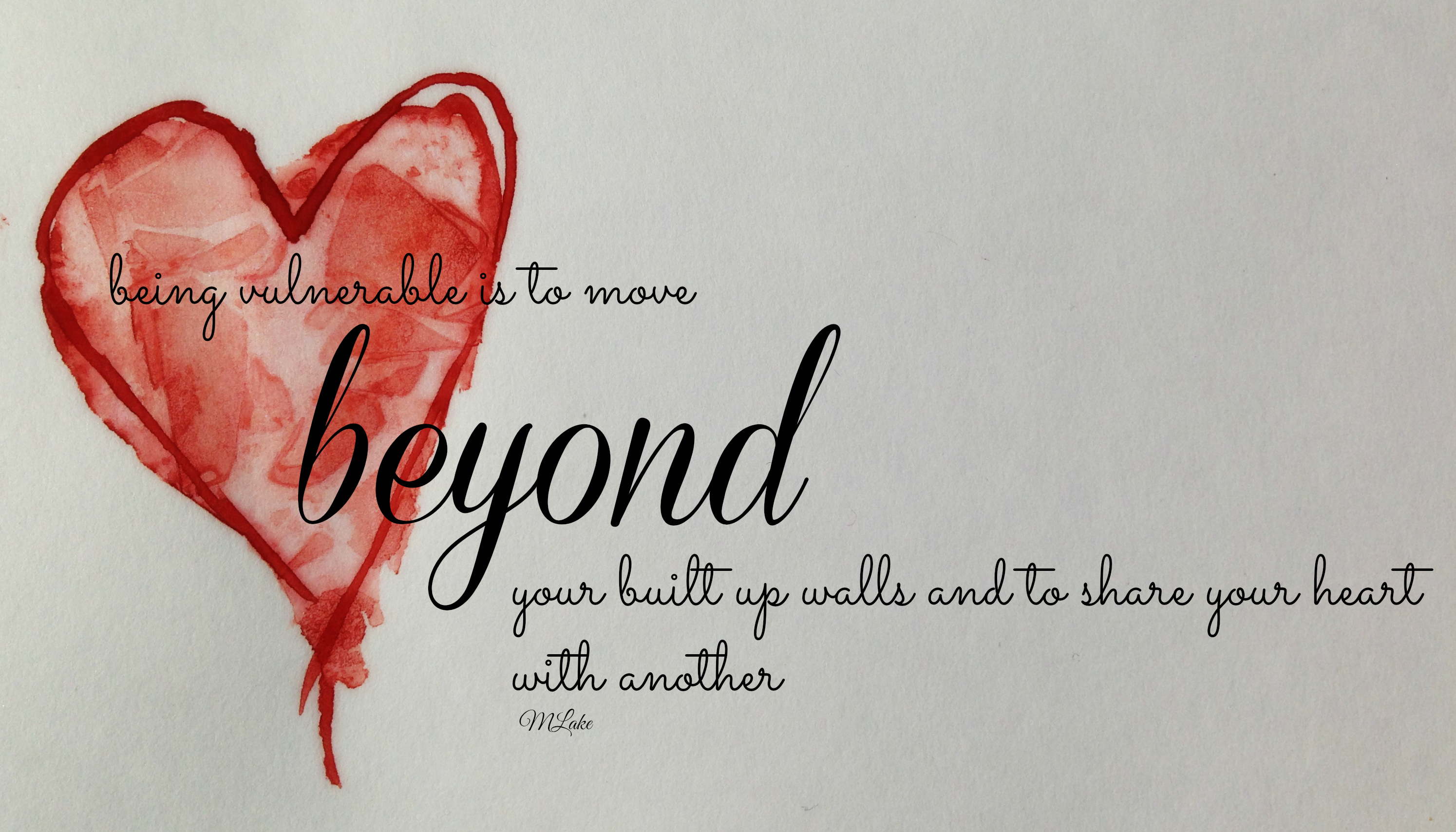 It is hard to be vulnerable, it is not always easy to open up and share, to lay your heart bare to another but to not be vulnerable is even harder. Bottling yourself up, building walls and impenetrable fences around yourself is even more damaging.  For when your loved ones can not see into your heart they can not help you when it is beginning to break. The hurt becomes deeper, the walls become thicker and the fences become higher.
