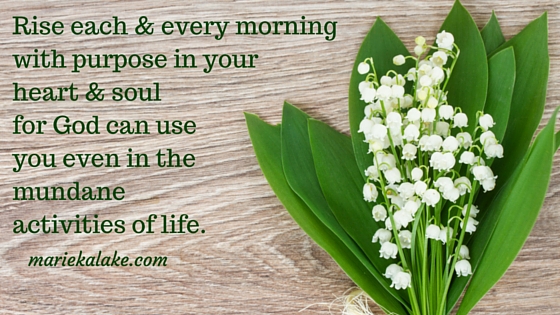 God began to speak to me on the condition of my heart. That I needed to stop despising the mundane and rise each and every morning with purpose in my heart and soul that God could use me even in the mundane activities of life.